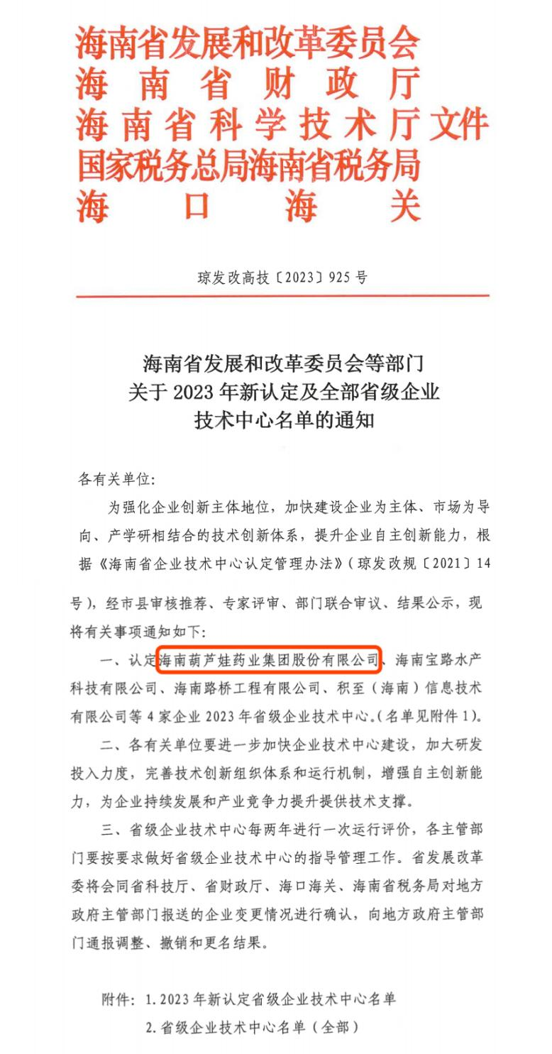 近日,海南省发改委等多部门联合公布了《关于2023年新认定及全部省级企业技术中心名单的通知》,其中,海南扑克之星药业集团股份有限公司成功通过评审,被认定为省级企业技术中心,是本次获批的4家企业之一。